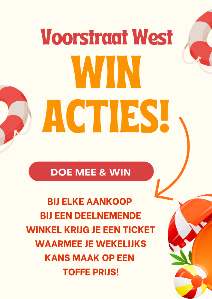 Elke week maak je kans op een nieuwe prijs van een andere leuke ondernemer op de Voorstraat West. Zo komen er binnenkort prijzen van 4 Your Games, Rebel with a Twist, Pancake District, Foodnerd en andere leuke winkels.